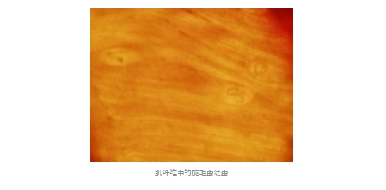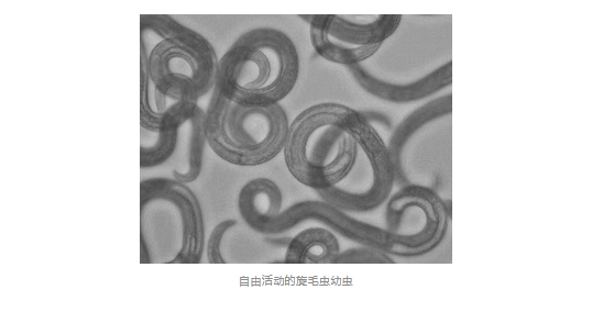 成蟲期:成蟲會(huì)在人體的小腸中停留幾周甚至幾個(gè)月來“產(chǎn)子”(卵胎生)。產(chǎn)出的幼蟲“寶寶”穿透腸壁,隨著血液和淋巴系統(tǒng)擴(kuò)散到全身肌肉中,形成“囊包”。
