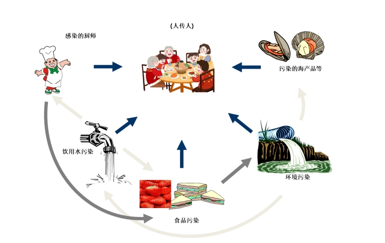 諾如病毒感染者和隱性感染者為傳染源,病毒傳播能力強,以糞-口途徑傳播為主,同時伴有其他傳播方式,如人與人密切接觸、直接接觸被糞便或嘔吐物污染的食物或水、吸入嘔吐時產(chǎn)生的氣溶膠,以及間接接觸被糞便或嘔吐物污染的物品和環(huán)境等。