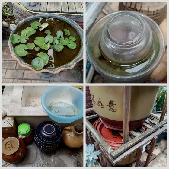 (三)天臺(tái)、陽臺(tái)及門前屋后積水管理。屋頂反墚、排水槽等應(yīng)定期疏通,避免堵塞積水。陽臺(tái)、天臺(tái)、庭院內(nèi)的花盆、泡沫箱、廢棄瓶罐等容器應(yīng)及時(shí)清理,閑置容器應(yīng)倒扣放置,儲(chǔ)水容器如水缸應(yīng)加蓋,廢棄容器徹底清除。竹筒、樹洞應(yīng)進(jìn)行封堵或改造,蓮花池養(yǎng)魚防蚊。空調(diào)冷凝水應(yīng)及時(shí)排凈,廢棄輪胎在底部打孔或避免露天放置。下水井進(jìn)行防蚊封堵,有條件的建議將明溝改為暗渠。